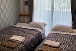 お部屋は全室オーシャンビューとなっており、昼は真っ青な海、夕刻は真っ赤に染まる夕陽が一望でき、リゾートホテルと何ら変わらない眺望がお楽しみいただけます。