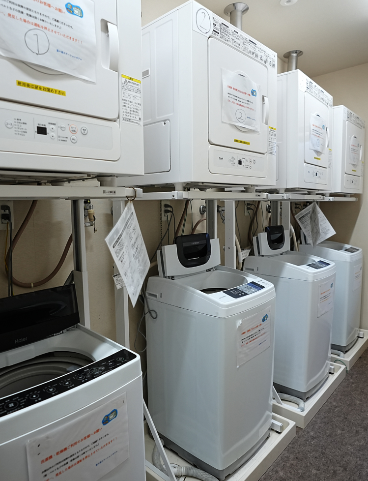 お仕事や長旅でご利用のご滞在者様へ、ランドリールームをご完備しています。 洗濯洗剤(有料)もご用意いたしておりますので、お気軽にご利用ください。 ・ご利用時間 6:30~12:00(無料) 12:00~22:00(有料) ご利用にあたり他のお客様にご迷惑が掛からないよう時間厳守でお願いいたします。