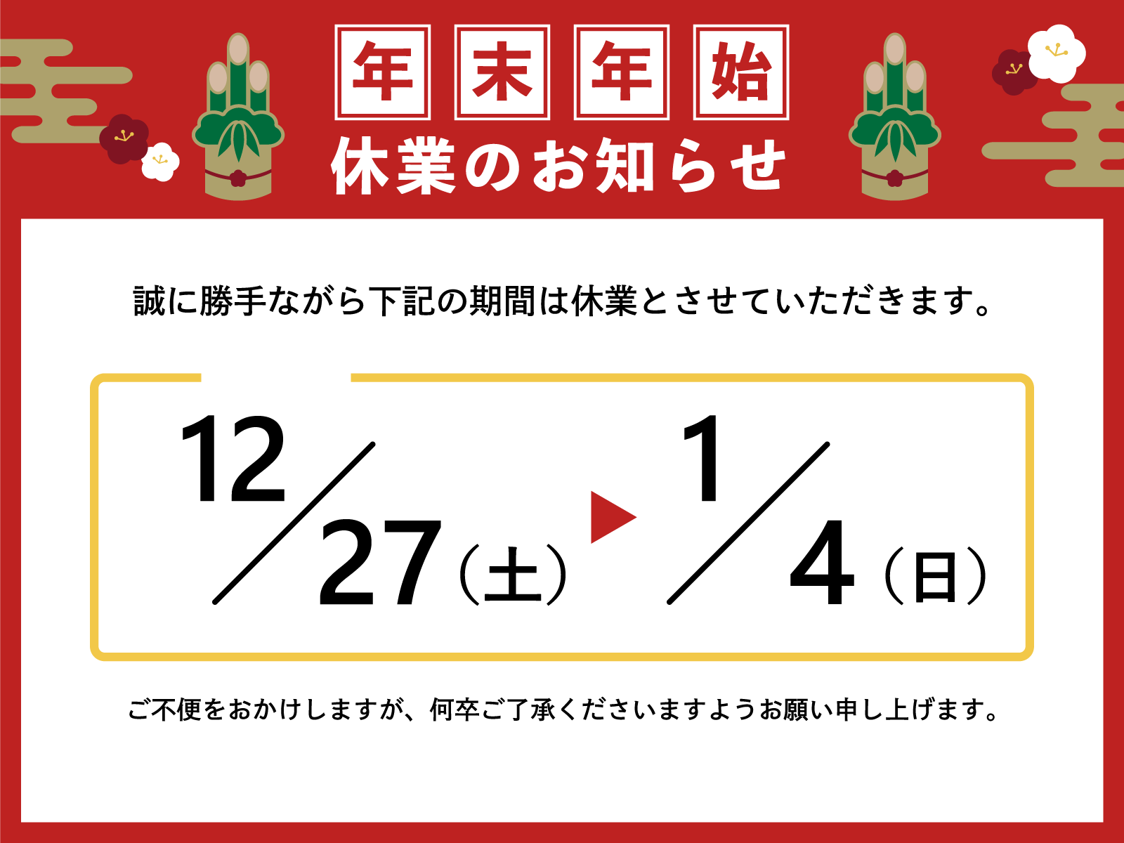 誠に勝手ながら2025年12月27日(土)~2026年1月4日(日)までお休みとさせていただきます。
