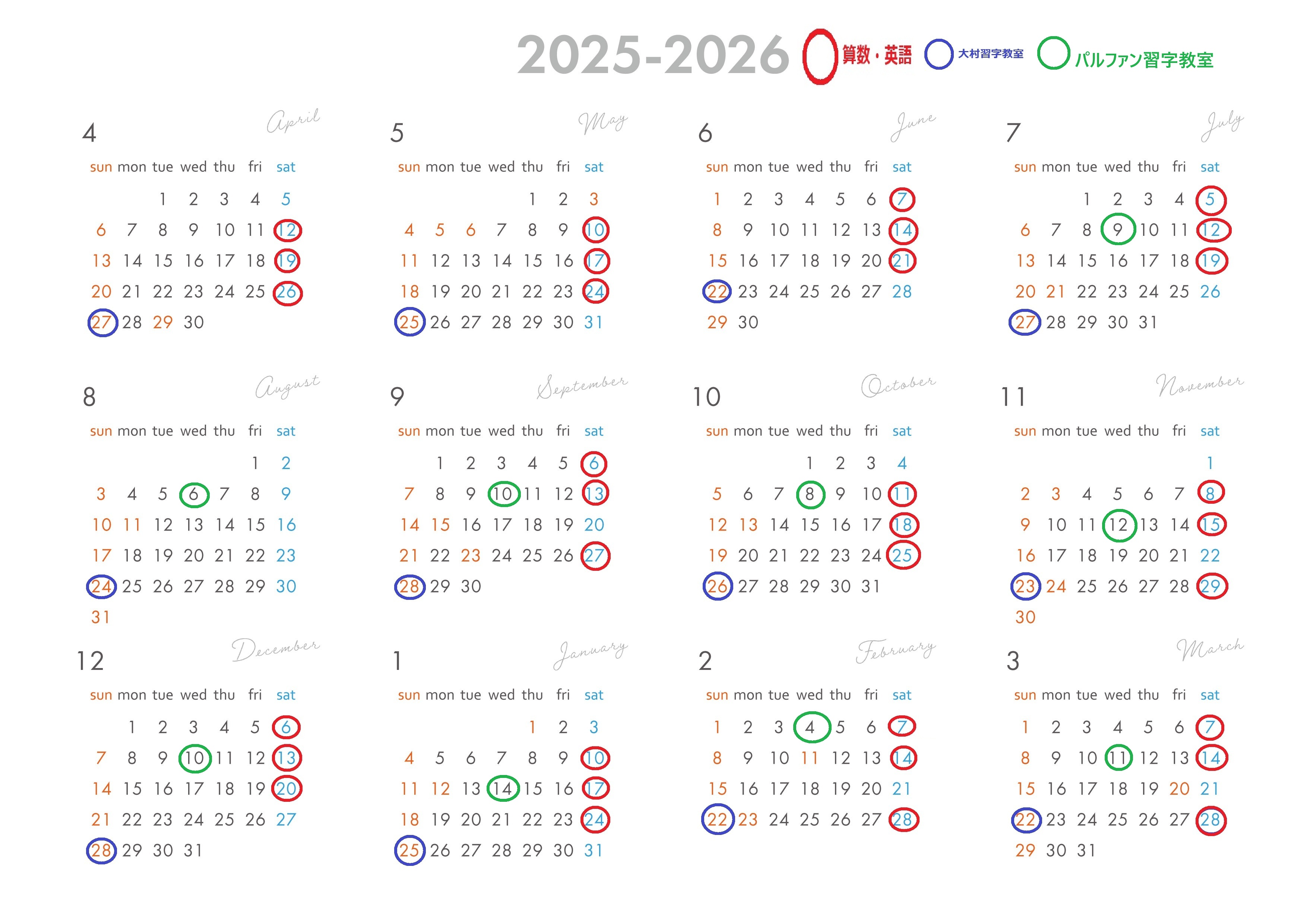 各教室の開催日は 、年間カレンダーにてご確認ください。